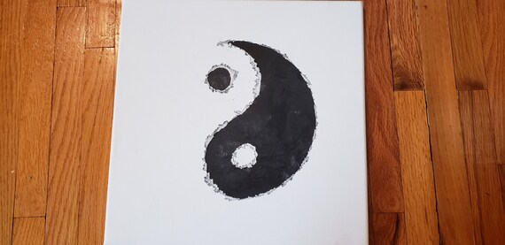 Yin yang symbol hand painted with acrylics on round natural | Etsy